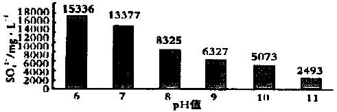 圖2 、3 、4 中隨著pH 值升高,SO4²-、NH4+ 、COD去除率逐漸增大, pH 值調節到6 時,SO4²-濃度為15336mg/L , NH4+ 濃度為6375mg/ L , COD 濃度為29327mg/ L ;而當pH = 11 時,SO4²-濃度為2439mg/ L ,NH4+ 濃度為2327mg/ L , COD 濃度為20730mg/ L 。SO4²-、NH4+ 、COD 分別是pH = 6 時的16 %、37 %、71 %。表明石灰用量越大,對污染物各項指標的去除效果越好,但并不經濟,將大大增加廢水的運行費用。其最佳pH 值為9 。具體參見http://www.dongaorq.cn更多相關技術文檔。