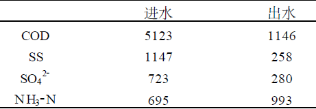 根據上述要求,中和處理后的廢水需4 倍稀釋后方可進入UASB 反應器, 稀釋后的廢水COD 為5000mg/ L ,SO4²-為700 mg/ L左右,NH4+ 為700 mg/ L左右,可直接進入厭氧處理工段。厭氧菌取向淀粉廢水厭氧污泥,接種量為25 %(v/ v) 。不同比例的味精廢水濃度從低到高依次進料。馴化啟動時間為3 個月,水力停留時間4d , COD 逐漸由2000mg/ L ~5000mg/ L 。UASB 反應器的出水COD 為1000mg/ L左右, 去除率為80 % ,SO4²-去除率為60 %左右, 而NH3-N 濃度有所升高,到達1000 mg/ L ,NH3-N 濃度的提高與厭氧系統的氨化細菌降解氨基酸和蛋白質有關。其處理效果見表3 。