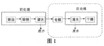 一般的電鍍工業生產工藝由三部分組成,如圖1所示。我們就清洗廢水的處理提出新工藝如圖2。