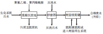 圖2 固定床離子交換樹脂吸附法深度處理生化工藝出水的中試工藝流程