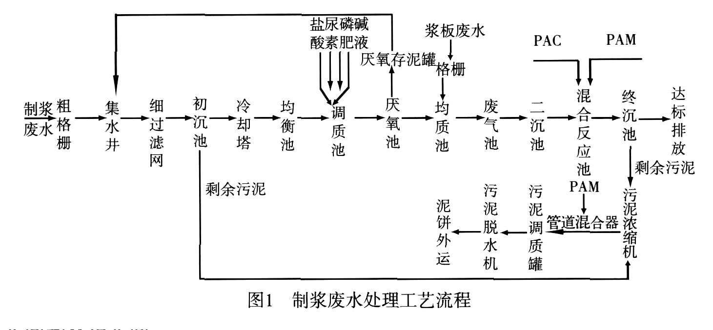 漿板車間廢水中的污染物主要包括懸浮固形物,如纖維、填料、涂料以及溶解的木材成分、添加的濕強(qiáng)劑、防腐劑等。廢水污染物濃度較低,但量大,應(yīng)用好氧工藝處理。制漿車間廢水經(jīng)厭氧處理與漿板車間廢水混合后進(jìn)行好氧處理,然后再輔以絮凝沉淀法處理。