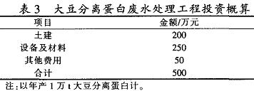 4.1大豆分離蛋白廢水處理工程總投資及構成大豆分離蛋白廢水處理工程總投資及構成見表3。