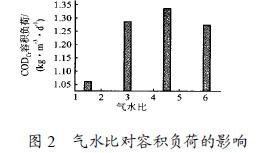 2. 2 氣水比對反應(yīng)器容積負(fù)荷的影響