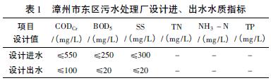 漳州市東區污水處理廠,設計處理水量10 萬m3 /d,其中工業廢水約占2 /3 左右。原設計沒有脫氮除磷功能,僅考慮在低負荷時具有部分硝化的能力。設計進出水指標如表1。