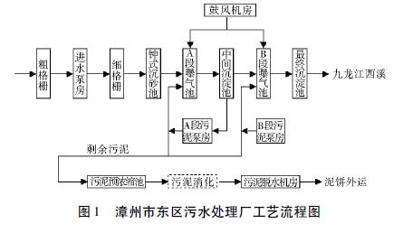 漳州市東區污水處理廠工藝流程圖如圖1