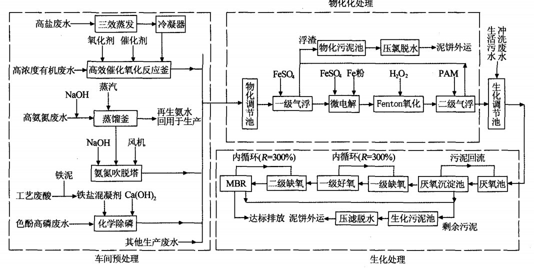 “氣浮+微電解+Fenton氧化+氣浮”物化處理工藝,以進(jìn)一步去除TP,分解難降解有機(jī)物,提高可生化性,為后續(xù)癿生化處理創(chuàng)造良好的條件。