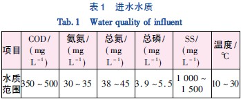 原水來自宿舍樓的合建化糞池,本項目對化糞池進行了改建擴容,使其具有一定水量調節能力.原水經化糞池調節后由潛污泵提升進入處理系統.