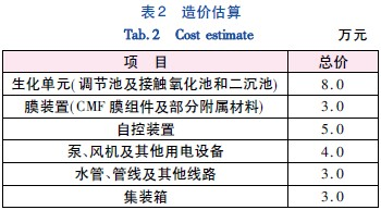 運行過程中噸水耗電為0.6 kW爛h,按照電價為0.5元/(kW爛h) 計算,電費需要15元/d.藥劑費為0.02元/m3,1元/d.總費用為76元/d,中水價格按照1.70元/m3 計算,自來水價格按照5.0元/m3計,使用再生水節約費用為3.3元/m3,節省用水成本為5.4 萬元/a.具體參見http://www.dongaorq.cn更多相關技術文檔。