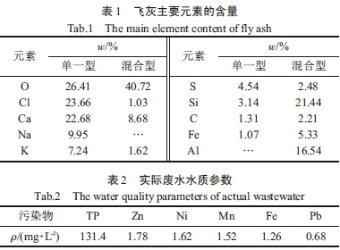 垃圾焚燒飛灰(以下簡稱飛灰)是垃圾焚燒廠煙氣凈化系統捕集到的小顆粒物質,屬于垃圾焚燒的二次污染物質,其含有多種重金屬,對環境有較大危害,一般按照危險廢物進行管理。目前對飛灰的主要穩定化方法包括藥劑穩定法、熱穩定法、固化法等,但其處理成本都比較高。飛灰本身具有豐富的元素組成和相對均一的理化性質,具有資源化利用的潛在價值,目前的資源化利用主要用于燒制建材,但能耗大且尾氣污染重。飛灰中含有較多的鈣、鋁、鐵鹽,而可溶性重金屬鹽也可以為涂裝廢水中的磷酸根沉淀提供陽離子,這對飛灰中的重金屬還能起到穩定化作用。此外,涂裝廢水中含有的Ni、Zn等重金屬也能通過沉淀過程得到很好的去除。因此飛灰處理涂裝磷化廢水具有理論可行性和很高的實際價值,但目前的研究報道還比較少見。