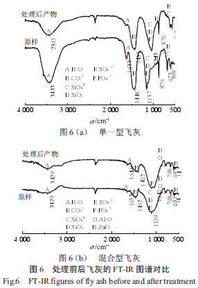 2 種飛灰處理前原樣及處理后產物FT-IR 光譜見圖6。