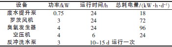 系統運行的主要成本是風機、水泵、臭氧發生設備運行電費及冬天水溫較低時購買蒸汽的費用(人工費、設備折舊費暫不考慮)。各設備用電情況見表2。