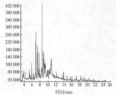 采用GC/MS 氣質聯用儀分析廢水組成(見圖 1)。由圖 1 可知,煉油廢水中存在約40 種有機物,但以苯酚、2,2-亞甲基-雙(4-甲基-6-叔丁基苯酚)、2-甲基苯酚、3-甲基苯酚、對甲基苯酚等酚類居多,約占60%以上,其余為長鏈烷烴和烯烴、芳香烴類、芳香羧酸類,分別為4%、12%、10%。煉油廢水中含有大量苯酚及其衍生物,采用一般的物理或生化處理技術很難降解,如直接排放必將產生很大的危害。