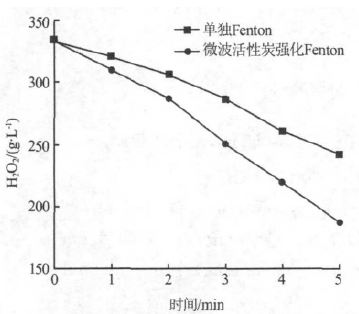 (2)微波輻照下Fenton 體系內的H2O2分解速率加快,短時間可產生高濃度·OH,使其氧化降解苯酚的效能得到提高,二者表現出良好的協同作用。