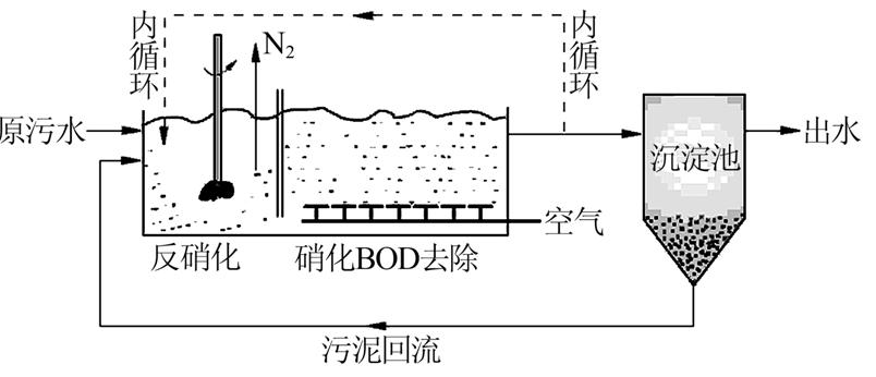 O池底部均勻布置有曝氣管路,通過鼓風(fēng)機(jī)等設(shè)備引入氧氣與污水充分接觸混合。在缺氧反應(yīng)池異養(yǎng)菌將污水中的淀粉、纖維、碳水化合物等懸浮污染物和可溶性有機(jī)物水解為有機(jī)酸,使大分子有機(jī)物分解為小分子有機(jī)物,不溶性的有機(jī)物轉(zhuǎn)化成可溶性有機(jī)物,當(dāng)這些在缺氧條件下水解的產(chǎn)物進(jìn)入好氧池進(jìn)行好氧處理時(shí),可提高污水的可生化性及氧的效率;在缺氧反應(yīng)池中,異養(yǎng)菌將蛋白質(zhì)、脂肪等污染物進(jìn)行氨化(有機(jī)鏈上的N或氨基酸中的氨基)游離出氨(NH3、NH4+),在充足供氧條件下,自養(yǎng)菌的硝化作用將NH3(NH4+)氧化為NO3-,通過回流控制返回至A池,在缺氧條件下,異氧菌的反硝化作用將NO3-還原為分子態(tài)氮(N2)完成C、N、O在生態(tài)中的循環(huán),實(shí)現(xiàn)污水無害化處理。與傳統(tǒng)生物脫氮工藝相比,A/O系統(tǒng)無需外加碳源,可利用原污水中的有機(jī)物作為碳源進(jìn)行反硝化,達(dá)到同時(shí)去除BOD和脫氮的目的;反硝化中增加的堿度可以補(bǔ)償硝化過程中對(duì)堿度的消耗〔3〕。