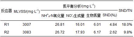 試驗在2個相同的SBR中進行,反應器有效體積為1.8 L.接種的活性污泥取自長沙市第一污水處理廠,起始活性污泥濃度約為4000 mg · L-1.R1運行方式如下:進水→靜置(1 h)→曝氣(2.5 h)→缺氧攪拌(3 h)→沉淀出水(0.5 h)→閑置(1 h);R2運行方式如下:進水→攪拌(1 h)→曝氣(2.5 h)→缺氧攪拌(3 h)→沉淀出水(0.5 h)→閑置(1 h).好氧采用鼓風曝氣,曝氣量控制為1.5 L · min-1.水力停留時間(HRT)為12 h.控制污泥停留時間為20 d,整個過程中不控制pH.