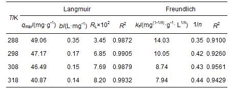 表4 不同溫度下GAC-CPC吸附溴酸根的Langmuir和Freundlich等溫線參數(shù)