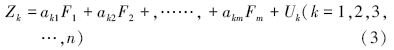 式中,Zk表示第k個變量的標準化分數,akm表示第m個因子相對于第k個變量的因子載荷,Fm表示第m個公共因子,Uk為Zk的唯一因素,m表示所有變量公共因子的數目,n表示變量的個數.