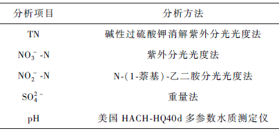 反應器連續運行期間對裝置進、出水的主要水質指標進行測定,其中TN、NO3- -N、NO2- -N 及SO4^2-均按《水和廢水監測分析方法》 測定,溫度為pH為現場測定。具體分析項目及方法列于表1。