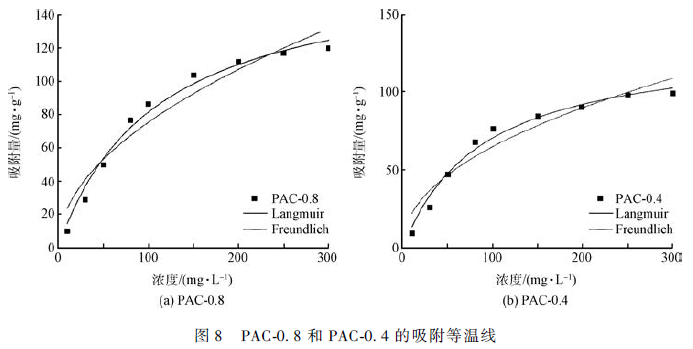 2)Langmuir 等溫模型比Freundlich 等溫模型更好地描述PAC-0. 8 和PAC-0. 4 的吸附行為,兩者對Cr(Ⅵ)吸附都是以靜電吸附為主。