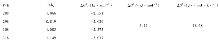 >0,表明該吸附反應(yīng)在較高溫度時是自發(fā)的吸熱反應(yīng)。隨著溫度的升高,