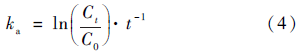 式中: ka 為染料降解速率常數(shù), Ct 為t 時(shí)刻染料濃度, C0 為初始時(shí)刻的染料濃度。