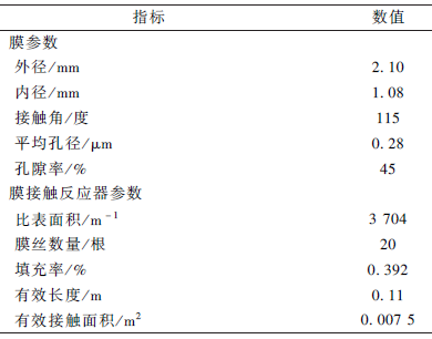 表1 膜及膜接觸反應(yīng)器參數(shù)