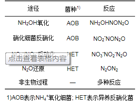 現(xiàn)有的大量研究表明, 污水生物脫氮過程中微生物的硝化及反硝化代謝過程是污水處理中N2O的主要產(chǎn)生途徑, 如表 1所示.