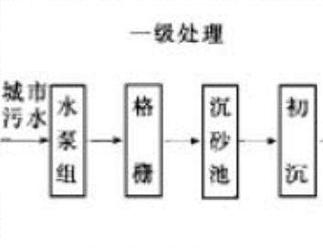 廢水的一級處理,主要去除廢水中呈懸浮狀態的固體污染物質,物理處理法大部分只能完成一級處理的要求。經過一級處理的廢水,BOD一般可去除30%左右,達不到排放標準。一級處理屬于二級處理的預處理。廢水的以及處理流程圖如下: