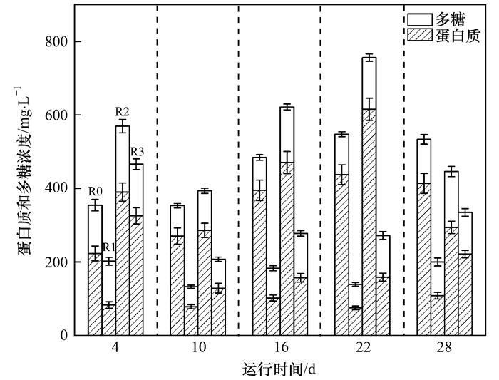 蛋白質和多糖是剩余污泥重要有機物, 作為厭氧消化的代謝基質, 其濃度變化可以間接反映厭氧消化速率[17, 18].圖 3為各組反應器蛋白質和多糖的濃度變化情況.