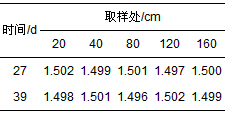 在濾柱運行至27 d和39 d時分別取20、40、80、120和160 cm處的濾料, 經(jīng)高溫滅菌后進行吸附性能分析實驗, 由表 1分析知, 原氨氮濃度為1.500 mg·L-1, 各處濾料吸附后氨氮濃度均約為1.500 mg·L-1, 故濾料在27 d時已經(jīng)吸附飽和, 此后濾柱中的氮素損失與濾料的吸附作用無關(guān), 而是由ANAMMOX過程造成的.結(jié)合圖 5分析知, 濾柱在39 d時特征值約為1.24, 在1<ΔNH4+-N/ΔNO3--N<8的理論范圍內(nèi), 且連續(xù)穩(wěn)定.因此, 低溫生物除鐵錳硝化耦合CANON工藝經(jīng)過40 d的培養(yǎng)啟動成功.