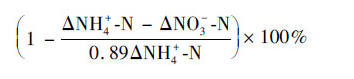 式中, Δ(NH4+-N):進出水氨氮變化量, (NH4+-N)in:進水氨氮量, (NH4+-N)out:出水氨氮量; Δ(NO2--N):進出水亞氮變化量, (NO2--N)out:出水亞氮量, (NO2--N)in:進水亞氮量; Δ(NO3--N):進出水硝氮變化量, (NO3--N)out:出水硝氮量, (NO3--N)in:進水硝氮量; TN:氮素總量, TNin:進水氮素總量, TNout:出水氮素總量, TNloss:進出水氮素損失, 上述參數(shù)的單位均為mg·L-1; NLR為氮素損失率(%).