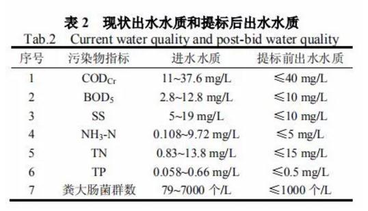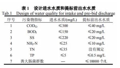 設計水量為 1.0 萬 m³/d,收集的污水主要為生活污水,污水處理廠設計進水水質及提標前出水水質如下表所示。