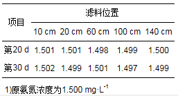 在第20和第30 d時分別取10、20、60、100及140 cm的濾料進行吸附性能分析實驗, 從表 1可知, 第20d時濾料已吸附飽和, 故忽略濾料對氨氮的吸附, 此后濾柱中氮素損失不是由濾料吸附造成, 故S2、S3和S5階段的氮素損失并不是濾料吸附造成.