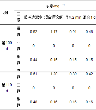 反沖洗泥吸附性能檢測參照文獻[10]:濾柱成熟后, 取反沖洗泥水250 mL, 向其加入500 mL濃度為1.5 mg·L-1的氨氮溶液并充分混合, 分別測反沖洗泥水、氨氮溶液與反沖洗泥水混合2 min、氨氮溶液與反沖洗泥水混合1 d后混合液中氨氮、亞氮和硝氮濃度, 為避免鐵錳泥雜質對測樣的干擾, 各組水樣均用0.45 μm濾膜過濾后測試溶液的“三氮”濃度, 重復實驗2次.