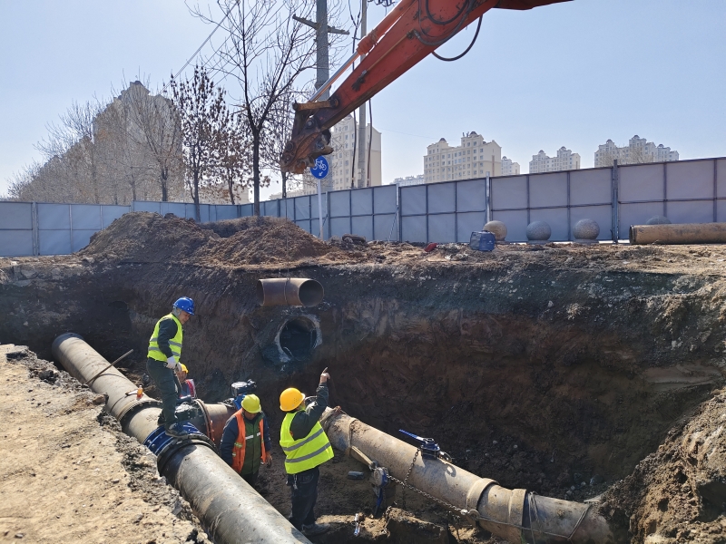 在項目建設現場起點,工人們正在進行管道安裝工作。