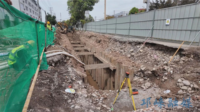 4月14日,記者在項目第一批次工程的新邛路配套污水管網的現場看到,10余名工人正有條不紊地開展臨邊防護、鋼板支護、基坑開挖以及污水管網的埋設等工作。