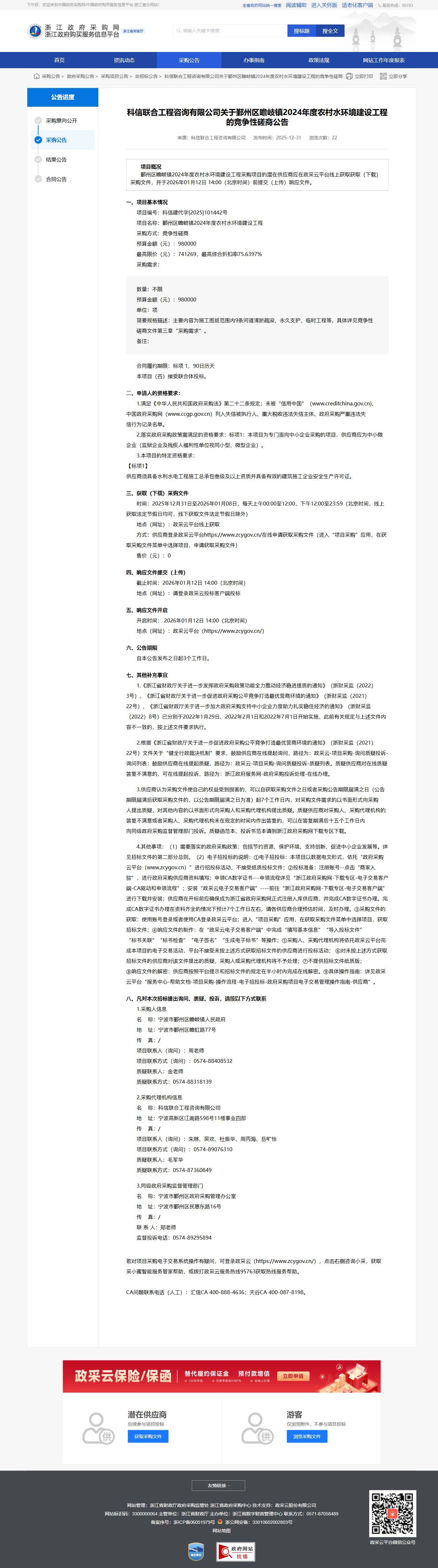 浙江關(guān)于鄞州區(qū)瞻岐鎮(zhèn)2024年度農(nóng)村水環(huán)境建設(shè)工程的競(jìng)爭(zhēng)性磋商公告