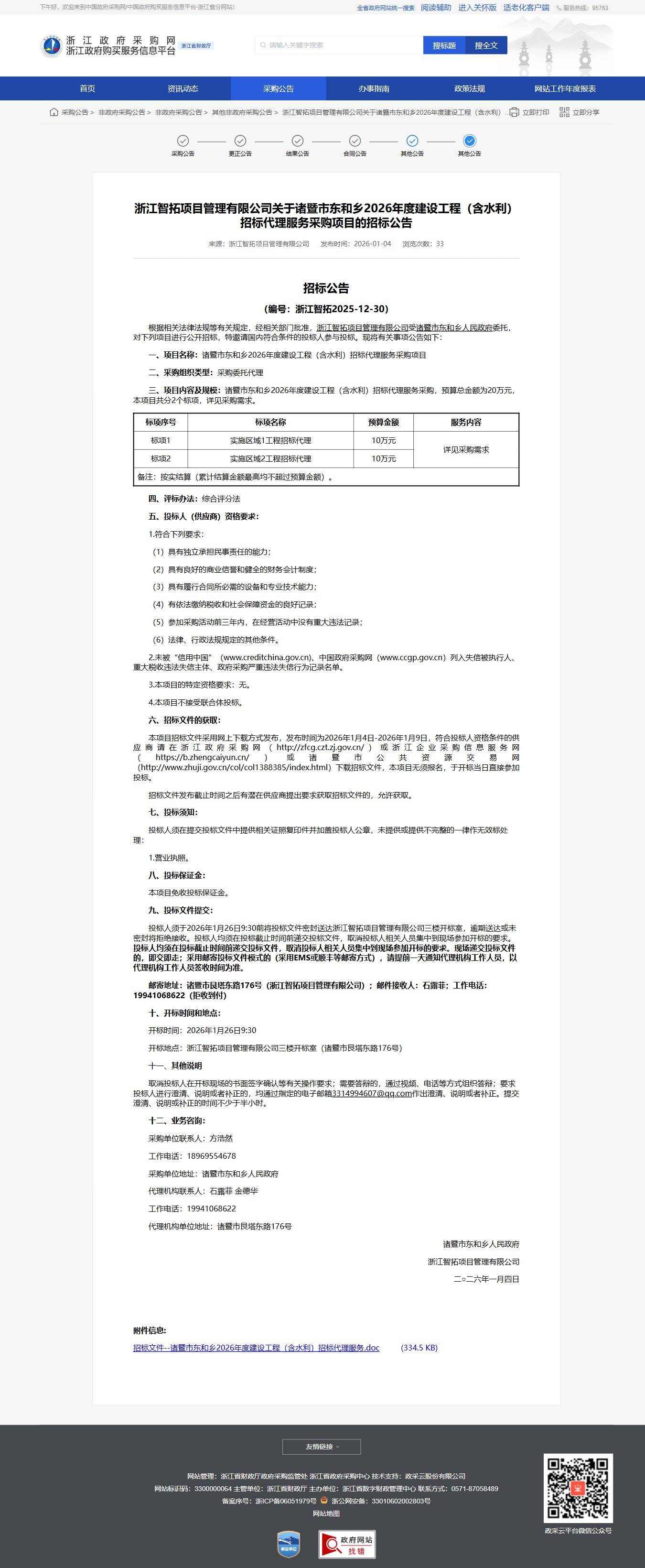 三、項(xiàng)目?jī)?nèi)容及規(guī)模:諸早市東和鄉(xiāng)2026年度建設(shè)工程(含水利)招標(biāo)代理服務(wù)采購(gòu),預(yù)算總金額為20萬(wàn)元,本項(xiàng)目共分2個(gè)標(biāo)項(xiàng),詳見(jiàn)采購(gòu)需求。