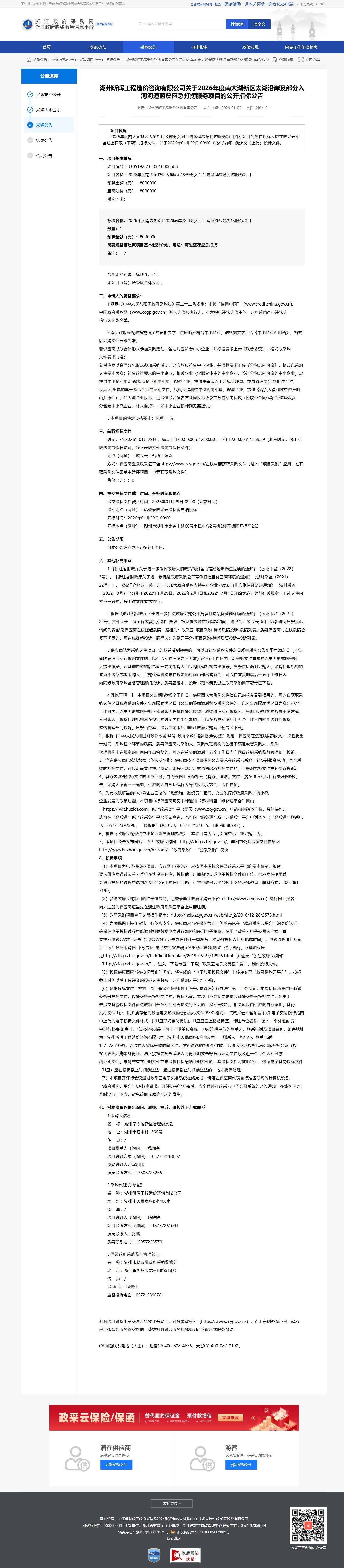 2026年度南太湖新區太湖沿岸及部分入河河道藍藻應急打撈服務項目