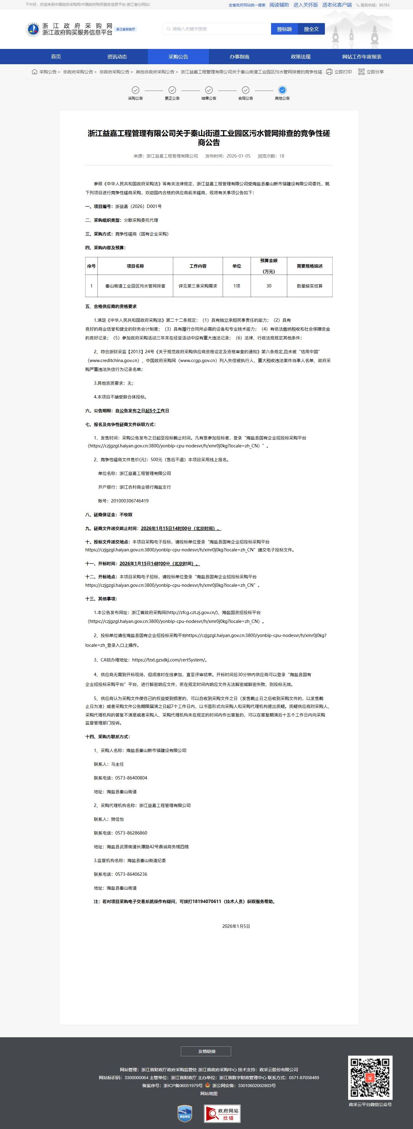 - 項目名稱:秦山街道工業園區污水管網排查