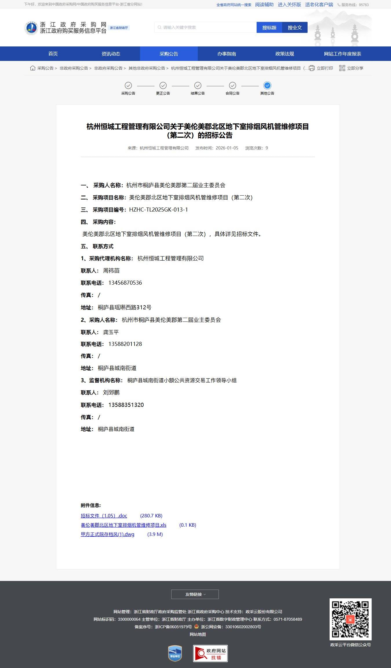 浙江關(guān)于美倫美郡北區(qū)地下室排煙風(fēng)機管維修項目(第二次)的招標(biāo)公告