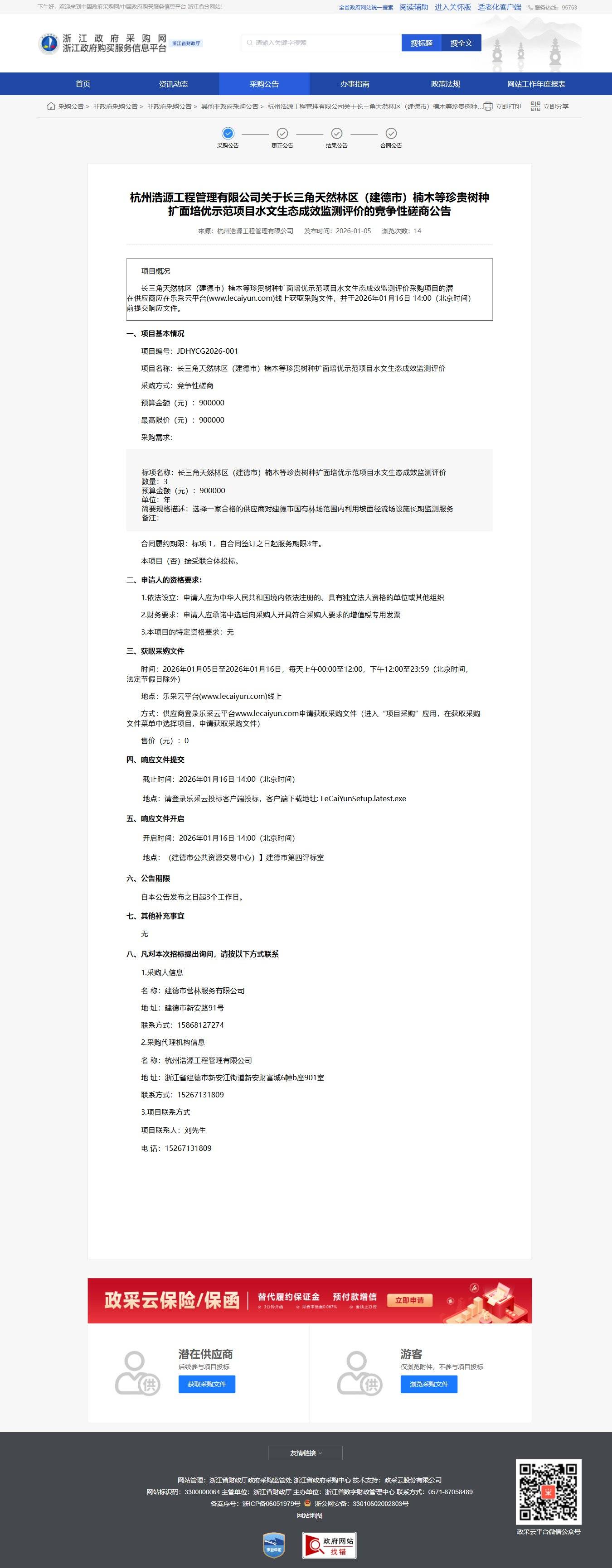 浙江關于長三角天然林區(建德市)楠木等珍貴樹種擴面培優示范項目水文生態成效監測評價的競爭性磋商公告
