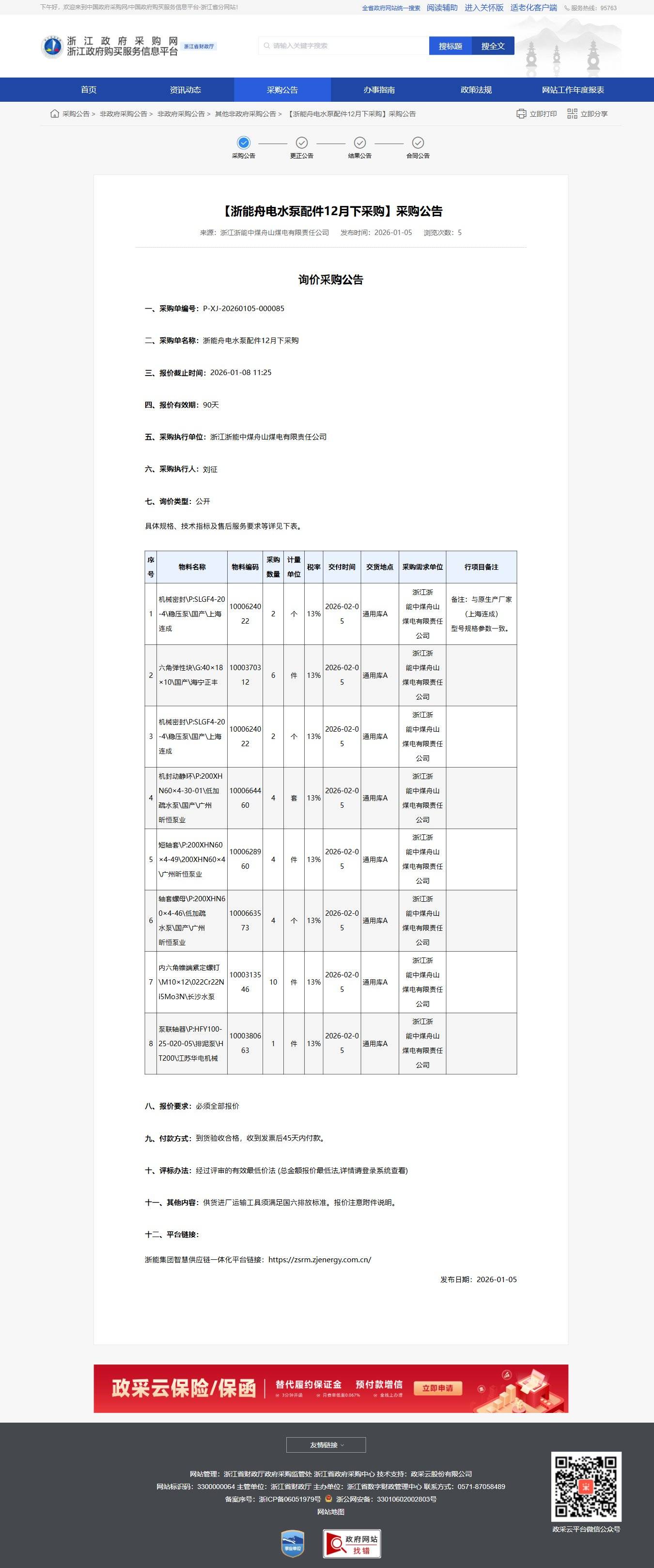 - 采購單名稱:浙能舟電水泵配件12月下采購