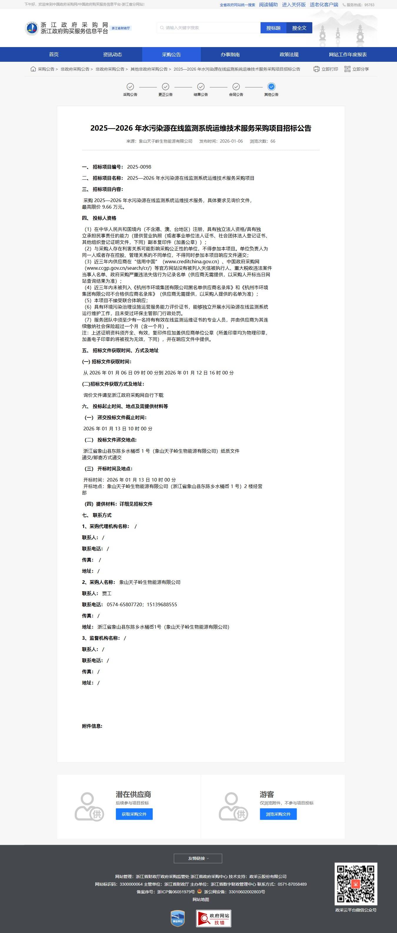 浙江2025—2026年水污染源在線監測系統運維技術服務采購項目招標公告