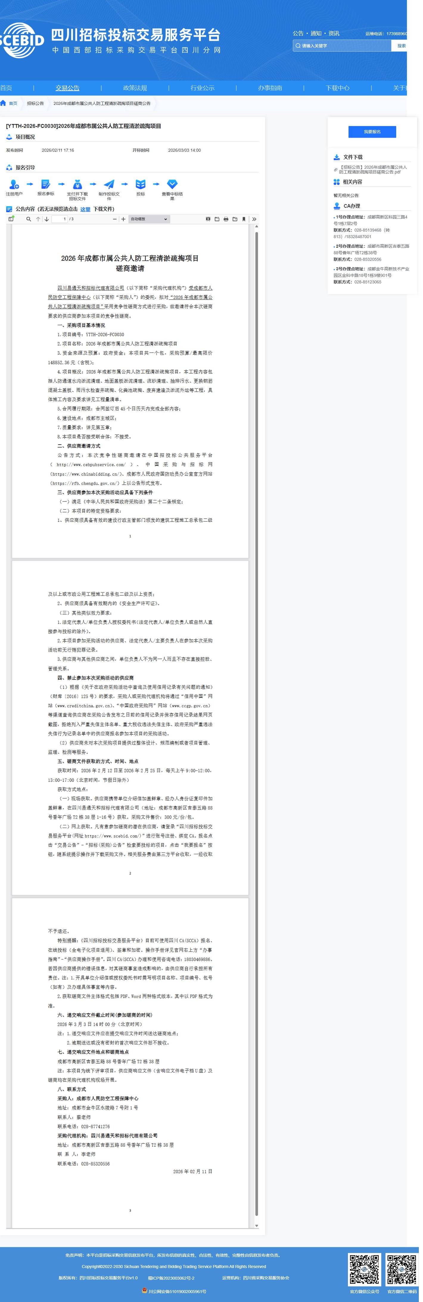 **2026年成都市屬公共人防工程清淤疏掏項目**