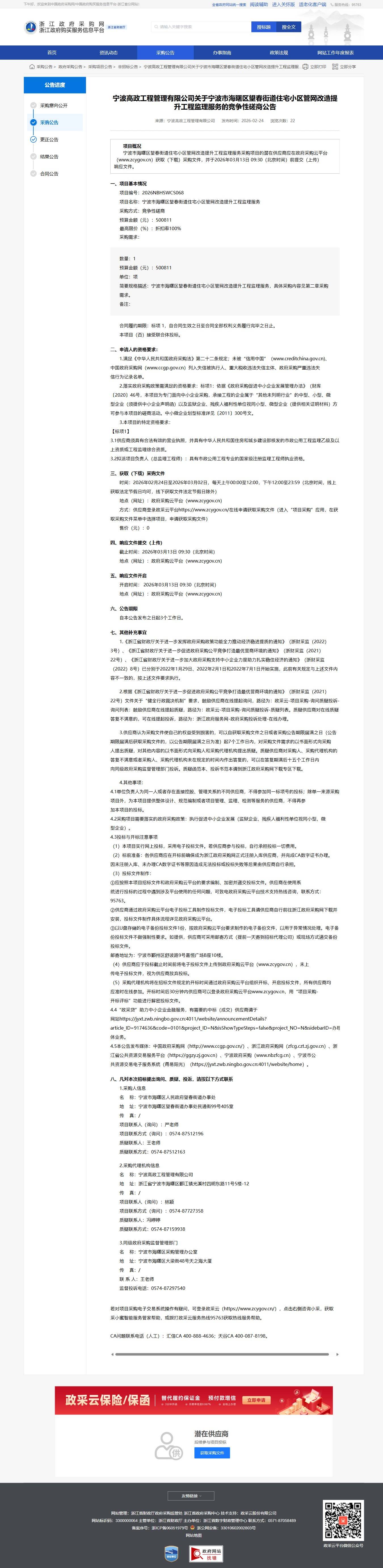 項(xiàng)目名稱:寧波市海曙區(qū)望春街道住宅小區(qū)管網(wǎng)改造提升工程監(jiān)理服務(wù)采購(gòu)項(xiàng)目