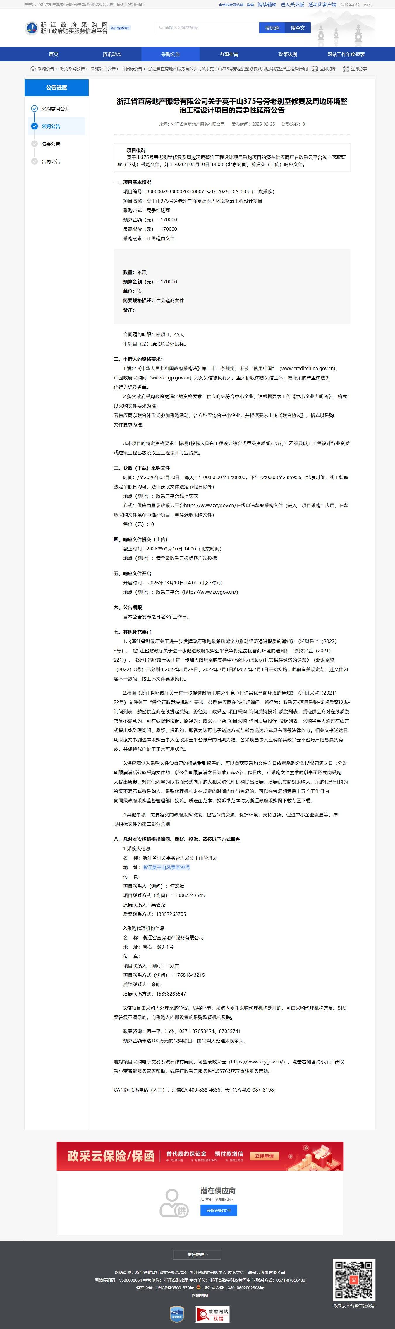 浙江關于莫干山375號旁老別墅修復及周邊環境整治工程設計項目的競爭性磋商公告