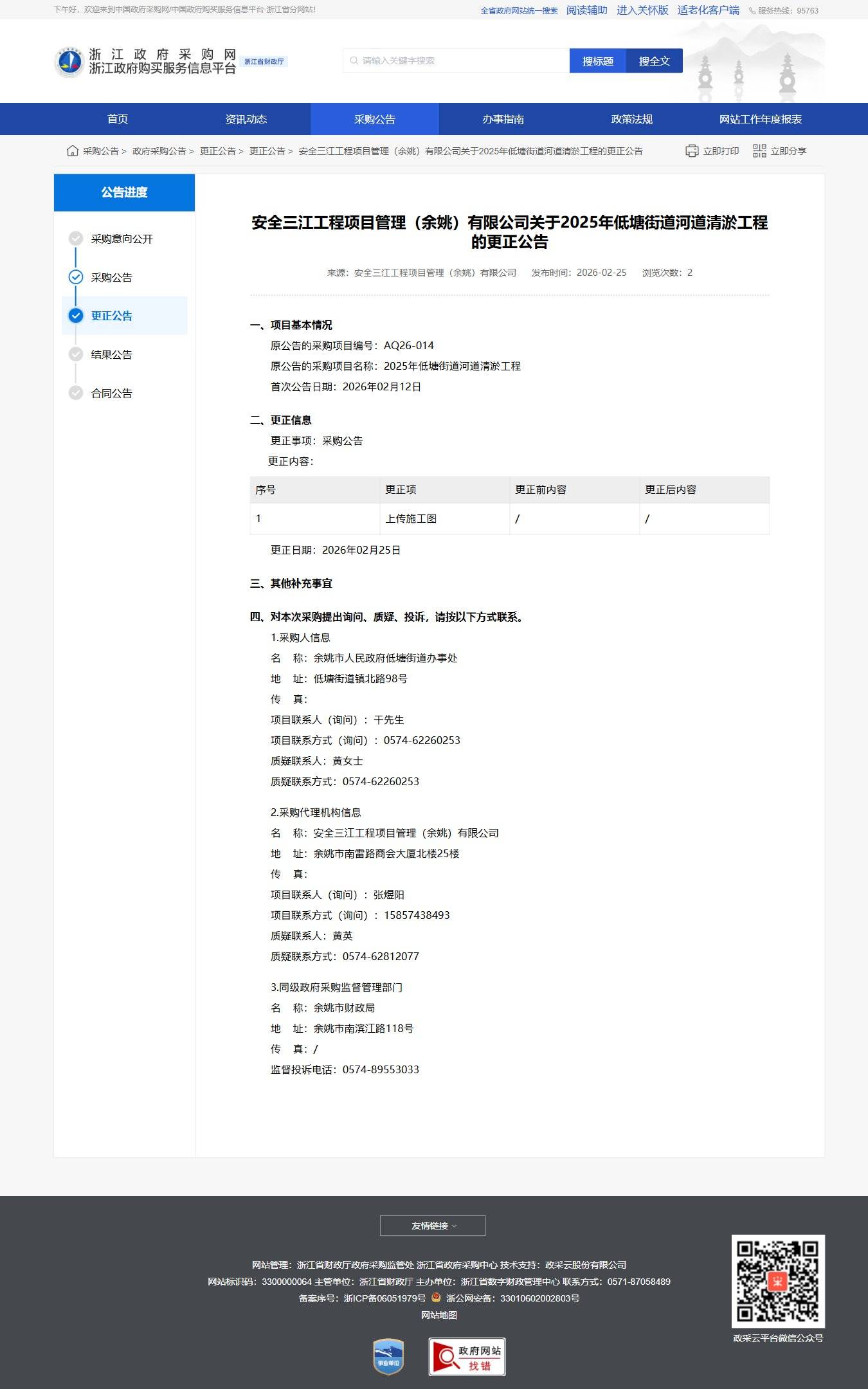 浙江關于2025年低塘街道河道清淤工程的更正公告