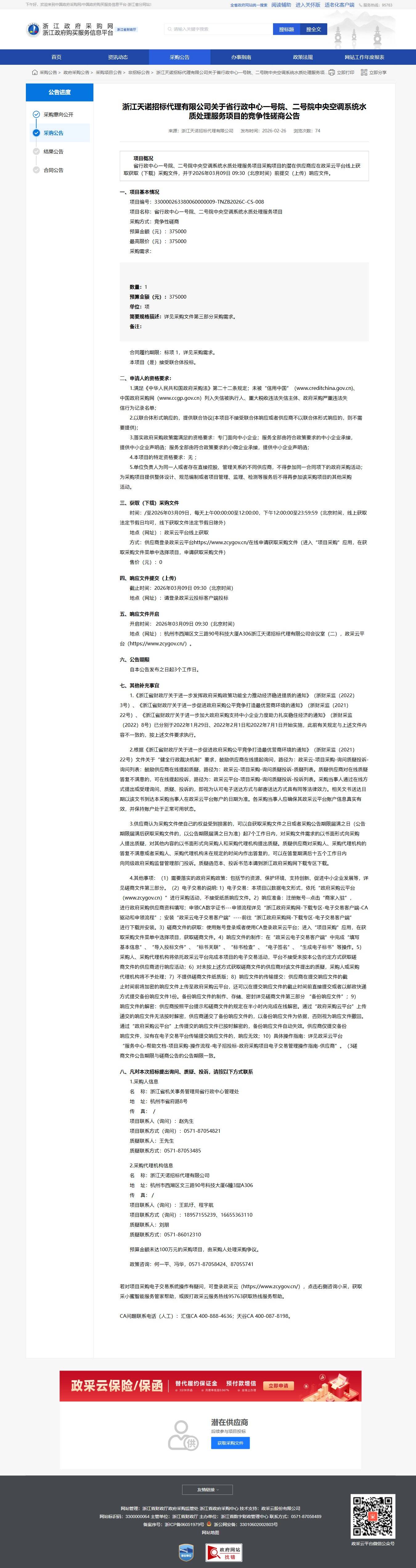 省行政中心一號院、二號院中央空調系統水質處理服務項目競爭性磋商公告
