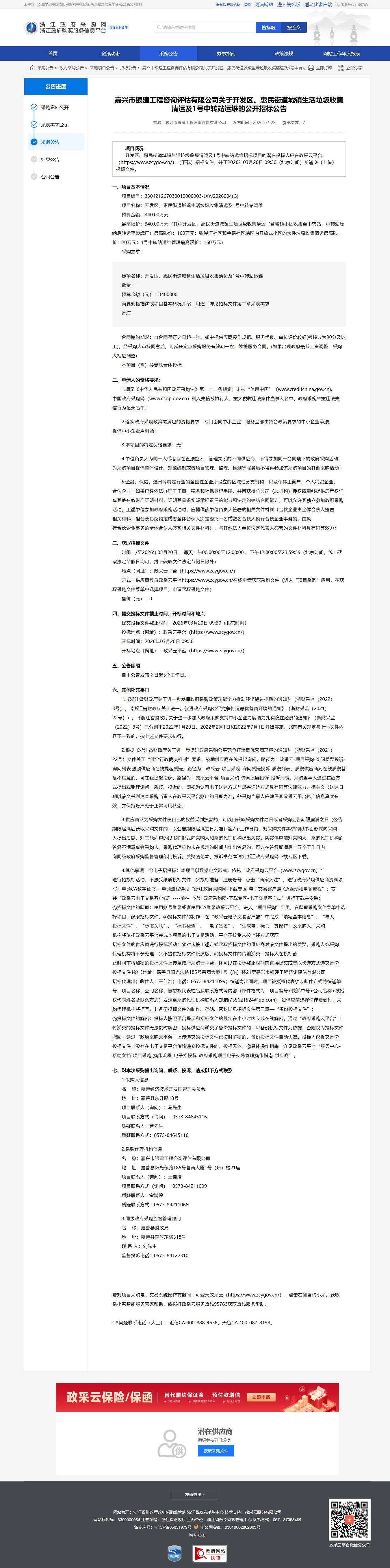 **嘉興市銀建工程咨詢評估有限公司關(guān)于開發(fā)區(qū)、惠民街道城鎮(zhèn)生活垃圾收集清運及1號中轉(zhuǎn)站運維的公開招標(biāo)公告**